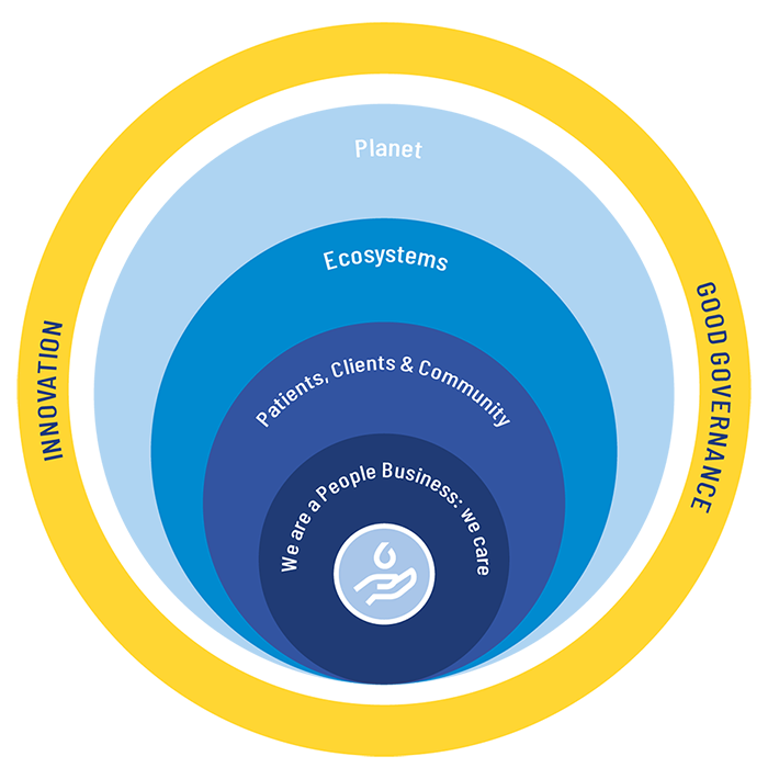 Our approach to sustainability is inseparably tied to the company Purpose “Unwavering Care”, taking care of people and families in everyday life.