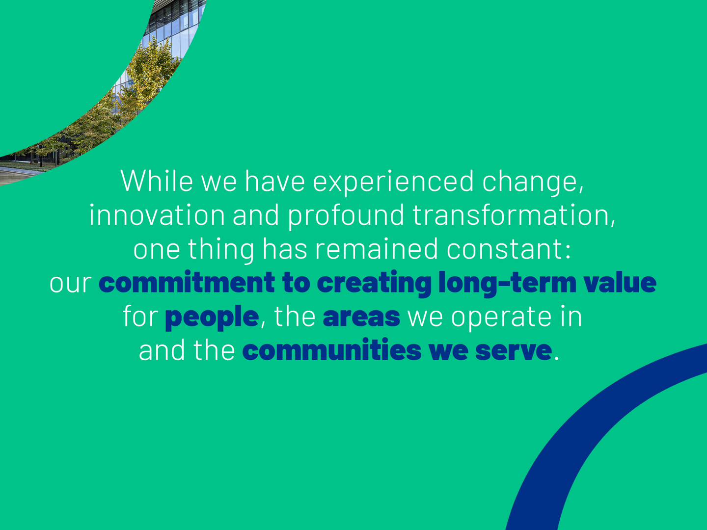 While we have experienced change, innovation and profound transformation, one thing has remained constant: our commitment to creating long-term value for people, the areas we operate in and the communities we serve.