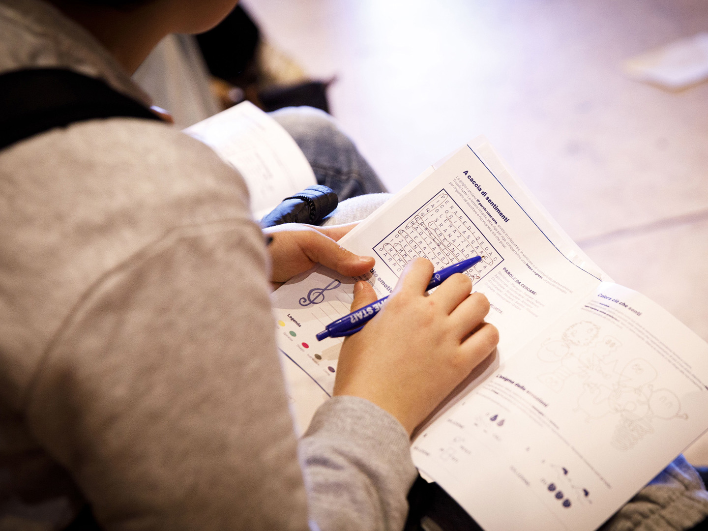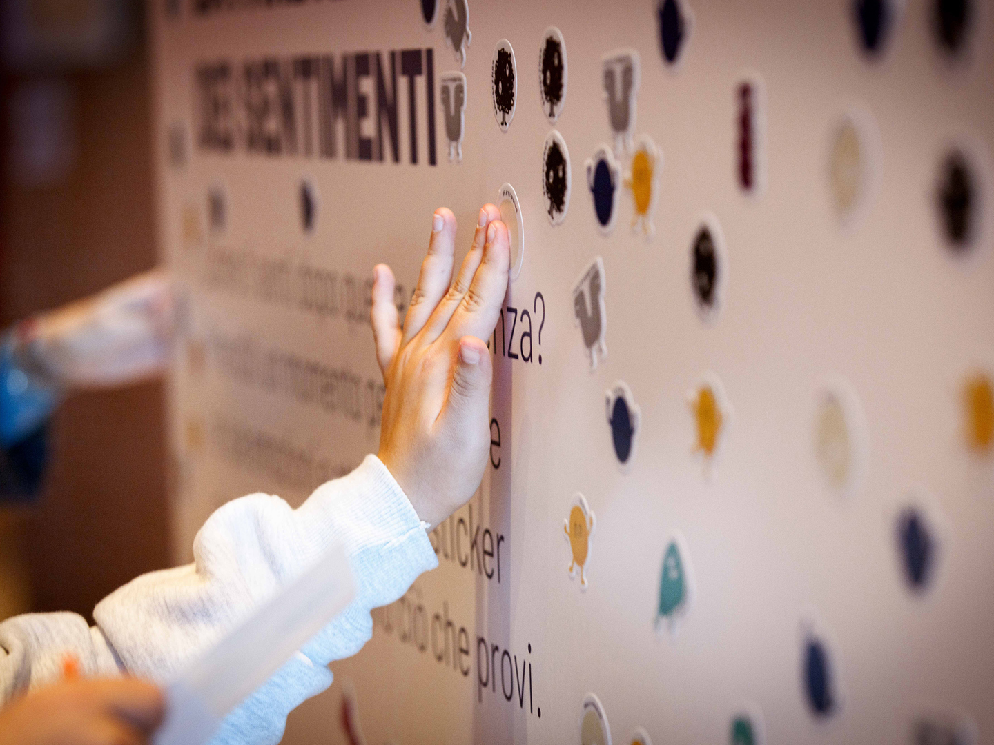 Through creative activities and educational games, young people are guided on a journey of exploration of their inner world, learning to accept and give shape to what they feel. Among the proposed activities is a posterzine featuring crossword puzzles, rebuses, colouring mandalas, and a special “emotional score”, designed to transform emotions into notes and colours. The program concludes with the wall of feelings: a large collective space where each participant can share what they felt before, during, and after listening, choosing a sticker that represents their mood at that moment.