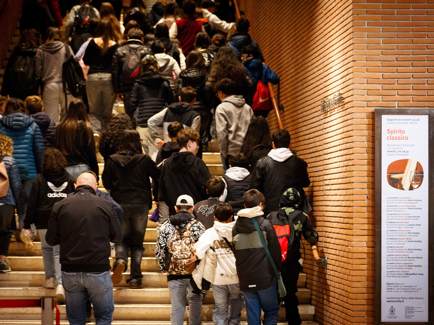 This vision gave rise to "Prove d'Ascolto" (Listening Tests), a project promoted by the Accademia Nazionale di Santa Cecilia in collaboration with Angelini Industries, as a founding member. A series of meetings designed to introduce young people to listening to orchestral performances and their ability to arouse emotions and welcome new perspectives on themselves.