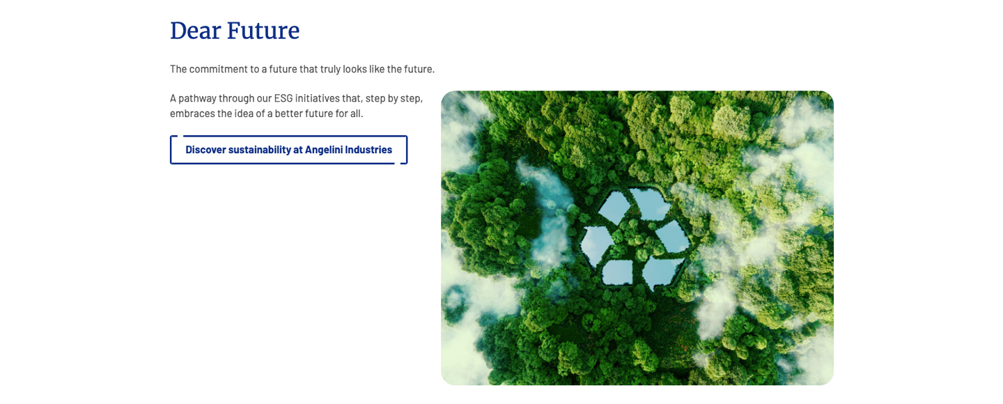The new angeliniindustries.com was born at the end of an intense and prosperous period of change, laying the foundation for our Group's future. A Group whose daily actions are based on a long-term vision and a better future for people and future generations and whose purpose places unwavering care at its core, an ongoing commitment to always do better for the benefit of all stakeholders. In the last year, a new name and brand identity were defined, and a strategic repositioning was outlined to enhance Angelini Industries’ multi-industry DNA.