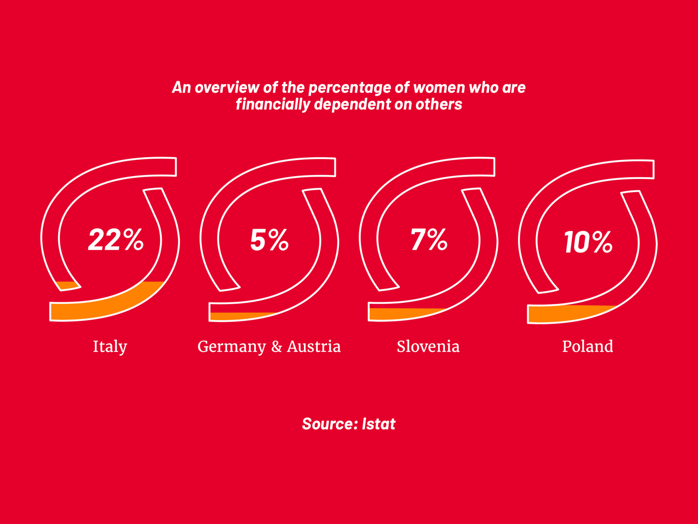 More than one in five women. Almost one in four. An isolated figure, the Italy one: in Germany and Austria, women in a state of financial dependence represent only 5% of the total, in Slovenia 7 percent, in Poland 10 percent.