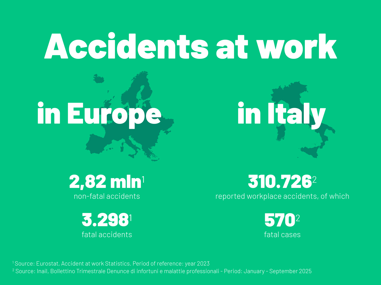 In Italy, between January and September 2025, a total of 310,726 workplace accidents were reported, 570 of which were fatal. Compared to the same period last year, reports of occupational diseases registered increased by 9.72%, reaching a total of 71,682[2] .