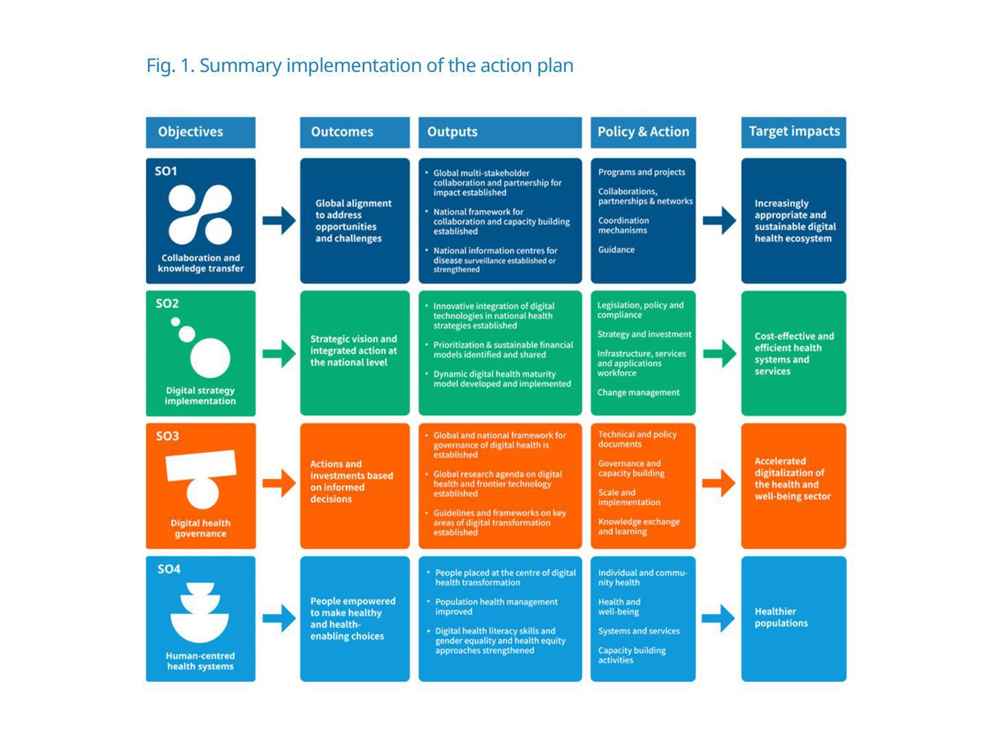 Nel report Global strategy on digital health 2020-2025 l’OMS definisce quattro obiettivi strategici per promuovere e favorire la digitalizzazione del sistema sanitario, definendo alcune aree di intervento prioritarie.