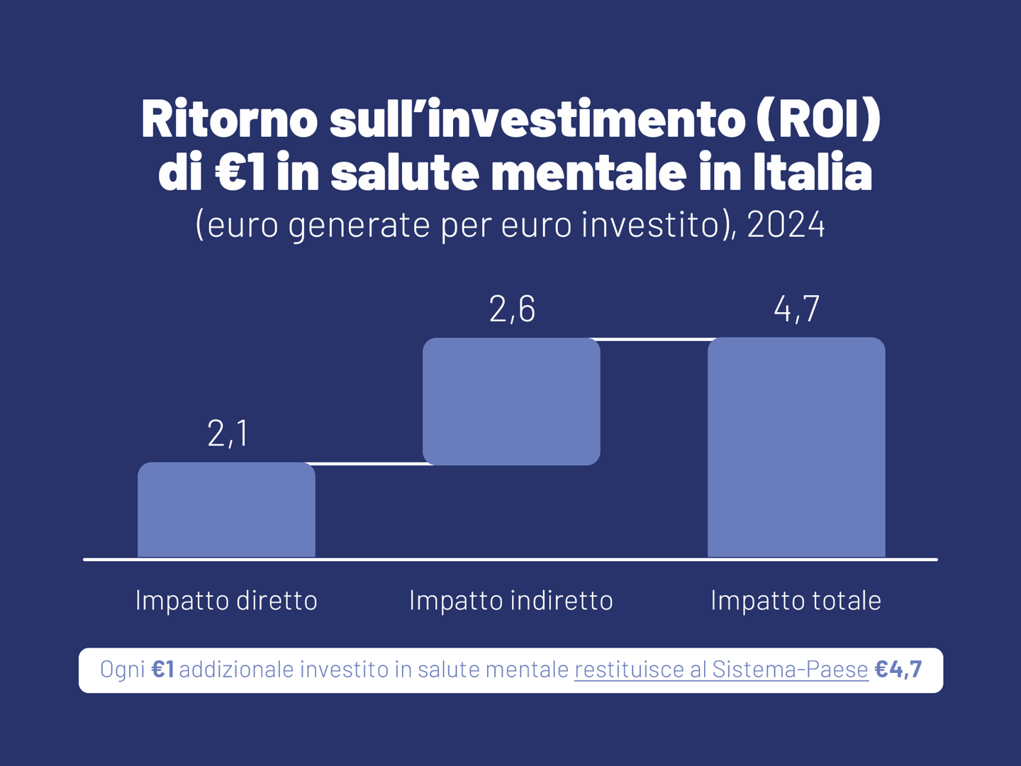 Attualmente, l'Italia destina il 3,4% della spesa sanitaria nazionale in salute mentale. Un incremento fino al 5%, in linea con la media UE,comporterebbe benefici economici per 10,4 miliardi di euro, derivanti dalla riduzione della spesa sanitaria diretta, della spesa assistenziale e sociale e dal miglioramento della produttività. Secondo le stime del Report italiano di Headway, ogni euro investito in salute mentale produce un ritorno di 4,7 euro per il Sistema-Paese.