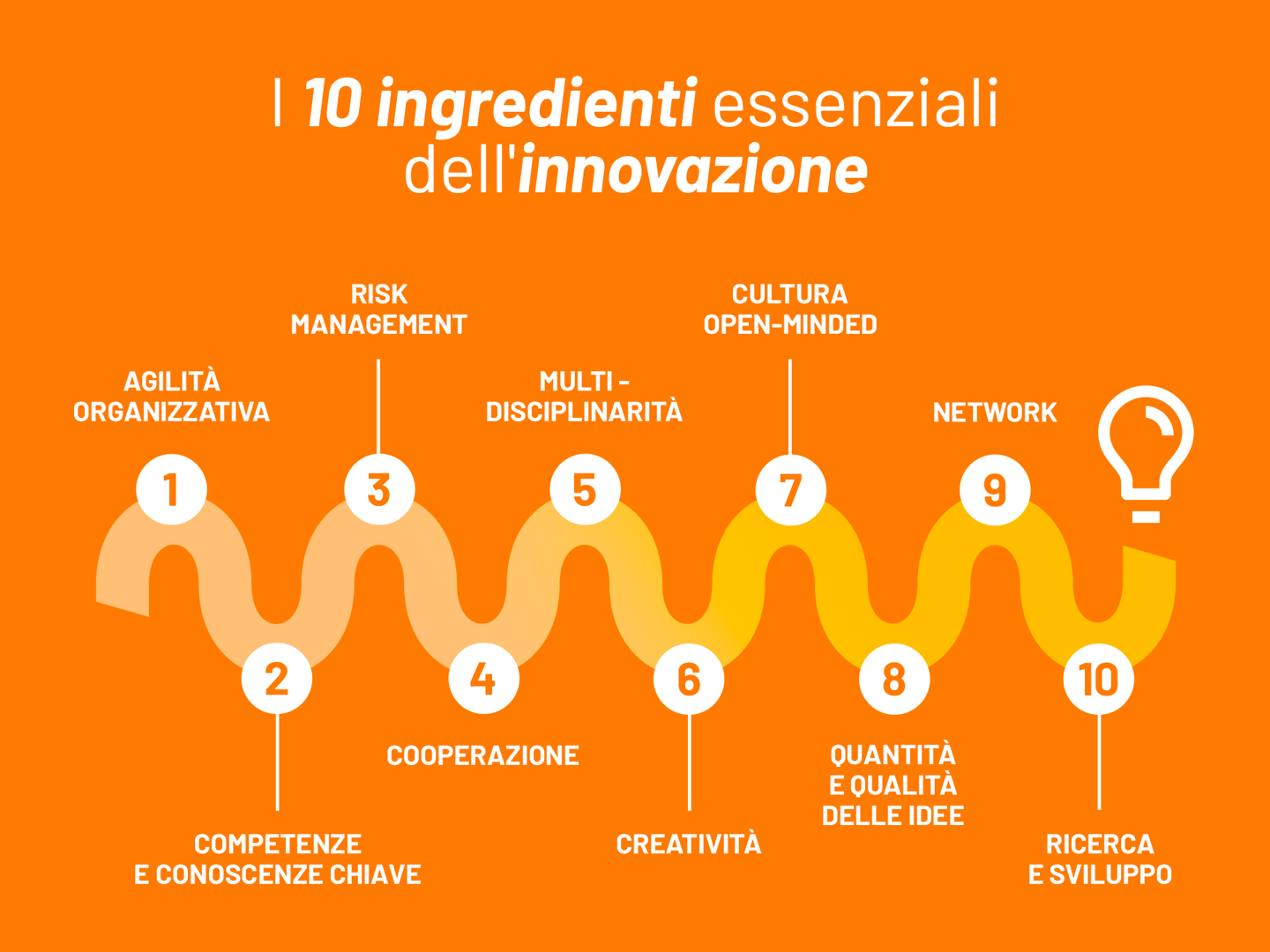 Innovare significa lavorare parallelamente sulla qualità e sulla quantità di idee. Il processo di innovazione deve essere costantemente alimentato, tenendo presente che oltre il 90% delle idee potranno rivelarsi infruttuose.