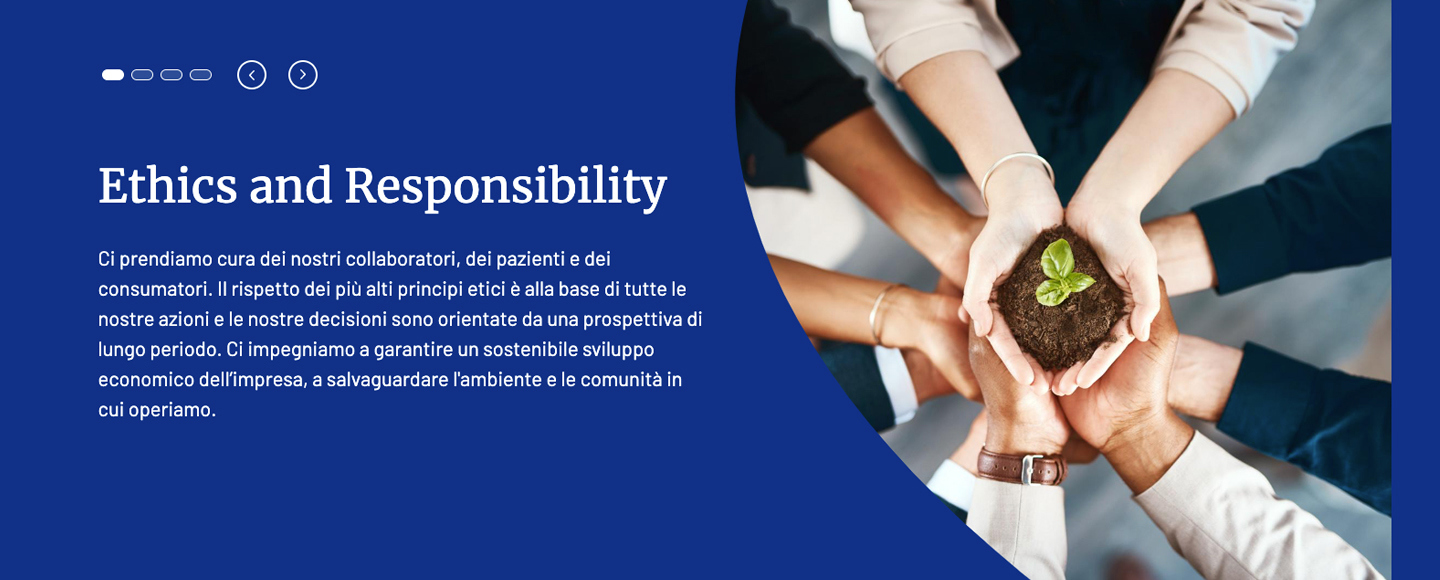 Nella sezione corporate del sito, Angelini Industries viene presentato in tutti i suoi aspetti, dalla governance, che tanto caratterizza la nostra realtà, alla leadership, ai dati finanziari, dal riferimento alle tematiche HR e all’impegno di Angelini Academy fino alle attività di CSR, e alla attività di business.